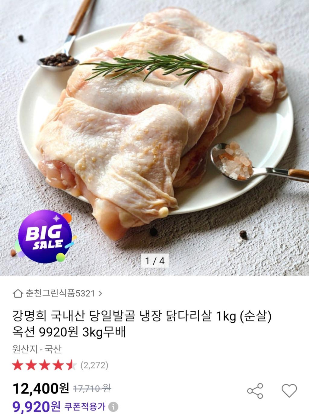 [옥션] 국내산 당일발골 냉장 순살 닭다리살 1kg