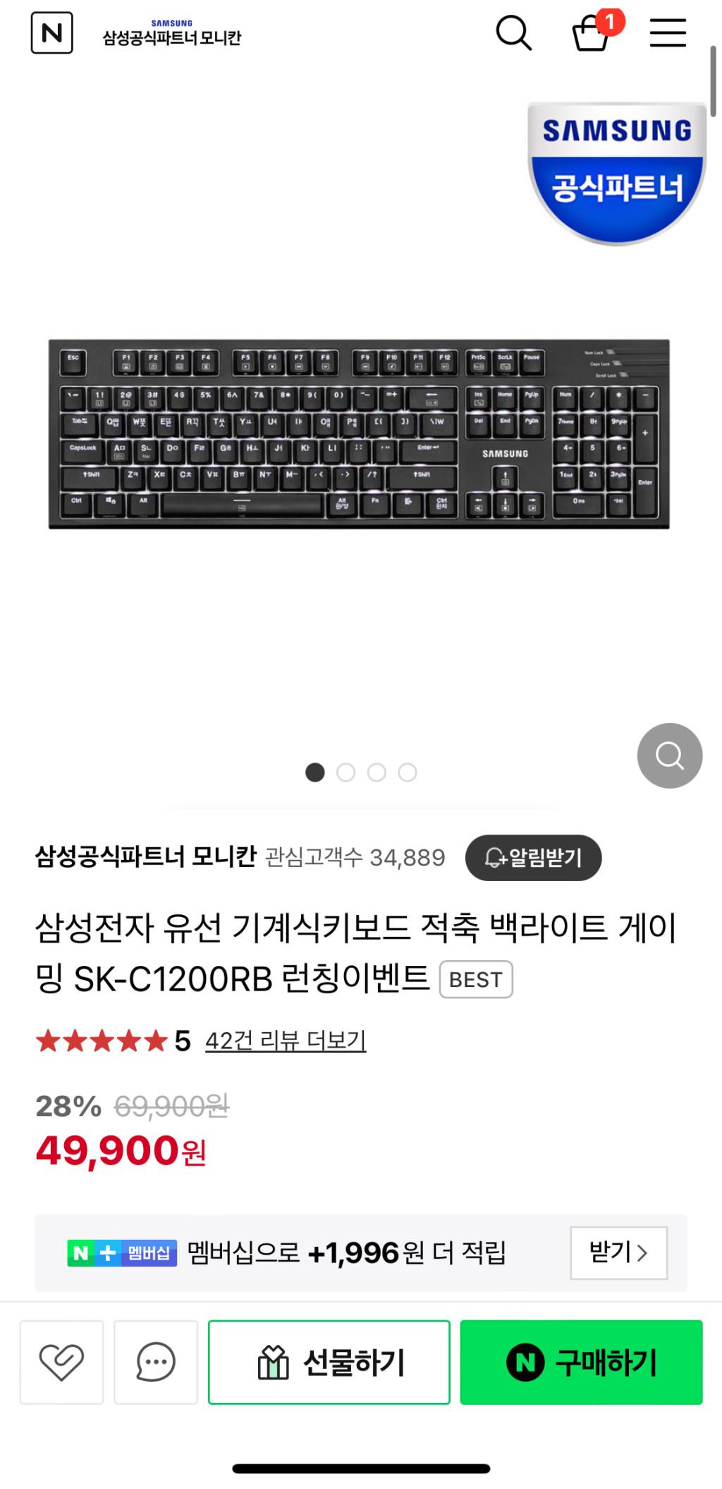 [네이버] 삼성전자 유선 기계식키보드 SK-C1200RB (49900/무배)