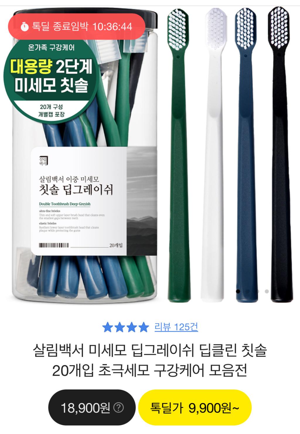 [카카오톡딜] 개별 캡 미세모 칫솔 20개입 (칫솔 다양)