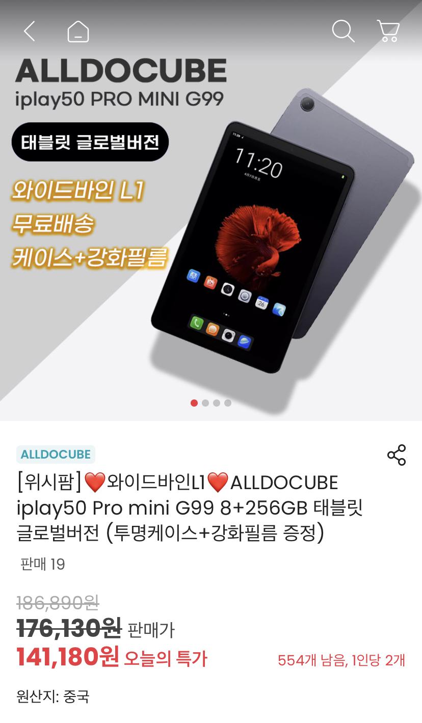 [큐텐] iplay50 Pro mini G99 8+256GB 태블릿 글로벌버전
