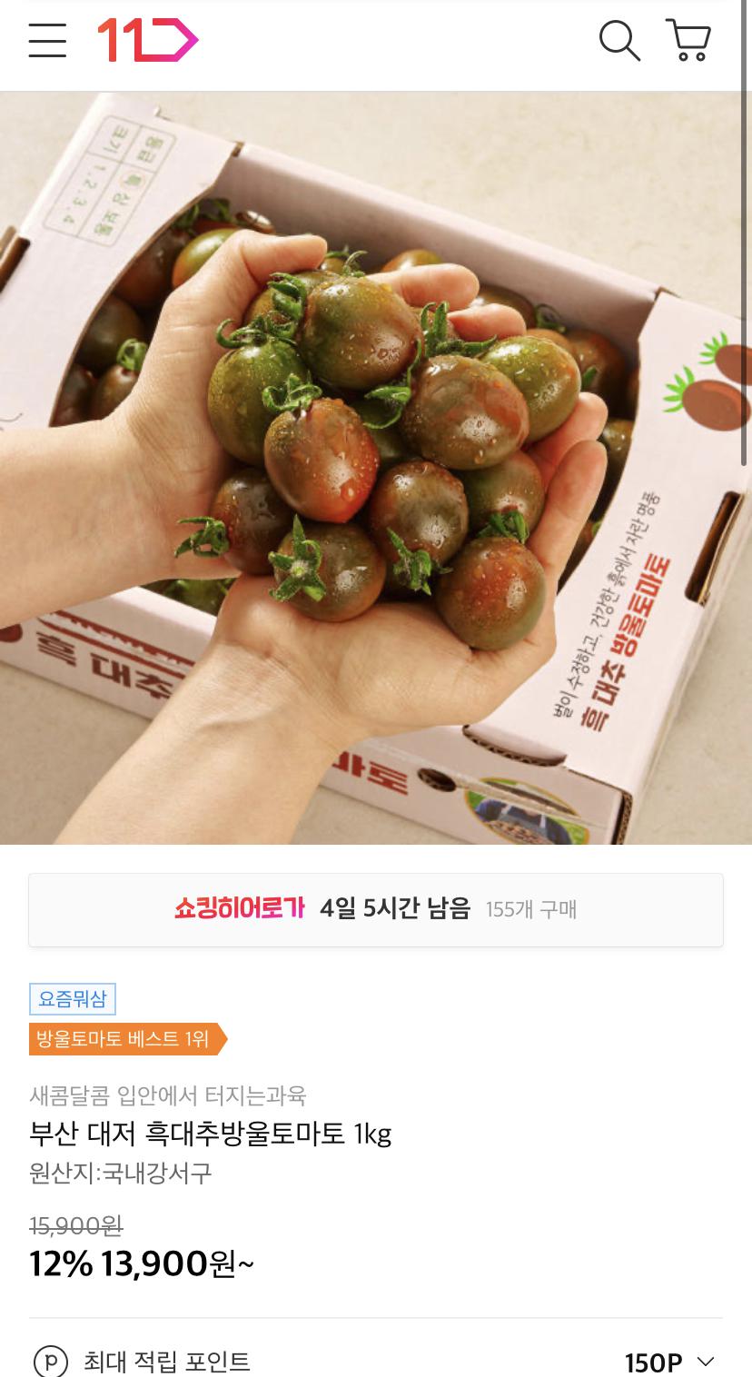 [11번가] 부산 대저 흑대추방울토마토 1kg (1-2번과)