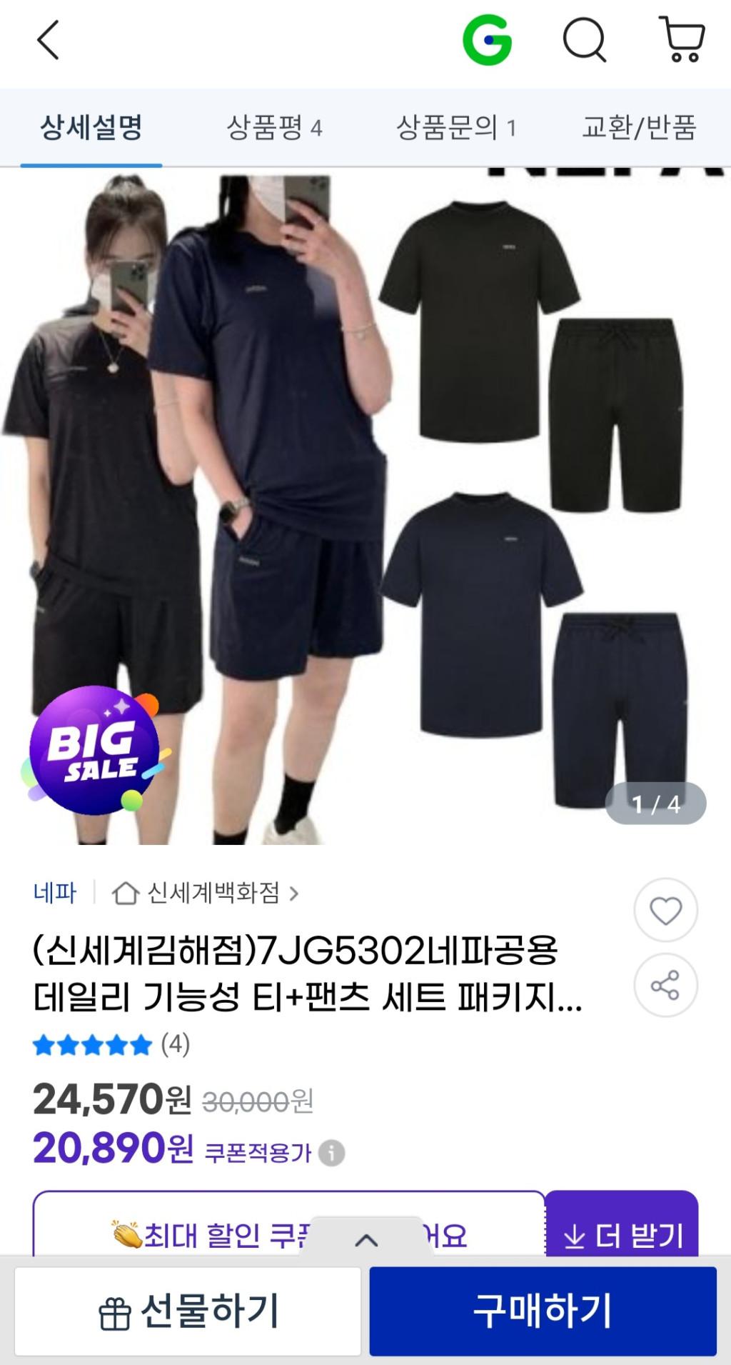 [G마켓] 네파공용 데일리 기능성 반팔티+반바지 세트(무배)