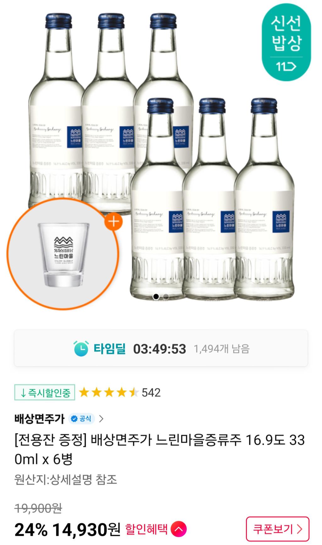 [11번가] 배상면주가 느린마을증류주 16.9도 330ml x 6병(무배)