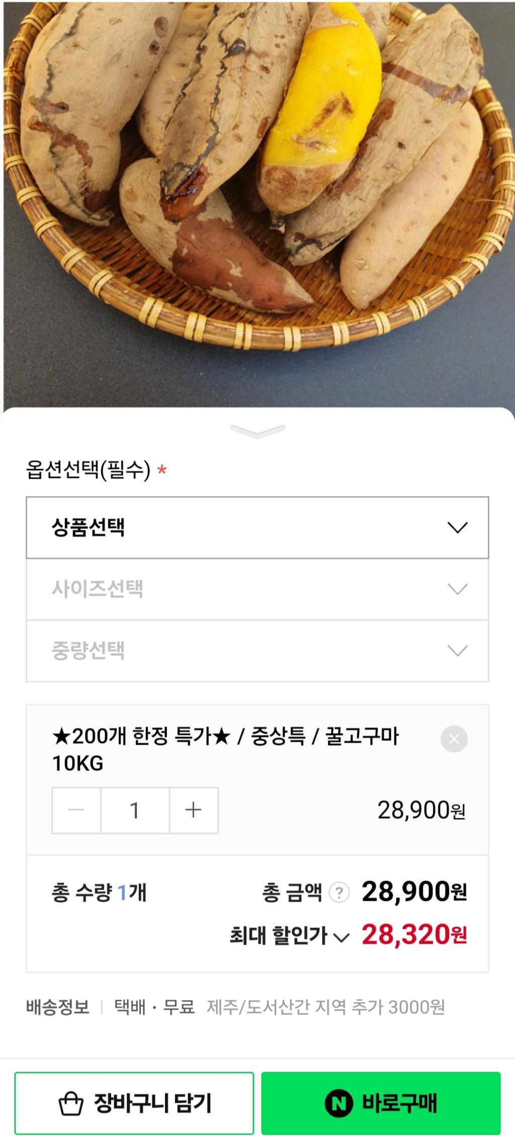 [네이버] 꿀 고구마 중상특 10KG(무배)