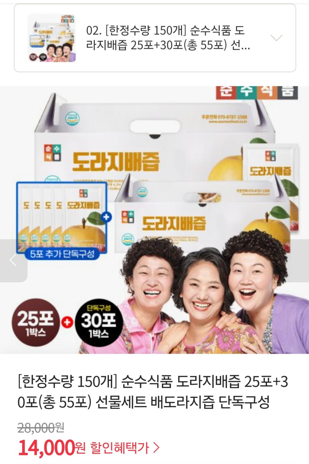 [위메프] 도라지배즙 25포+30포 선물세트(무배)