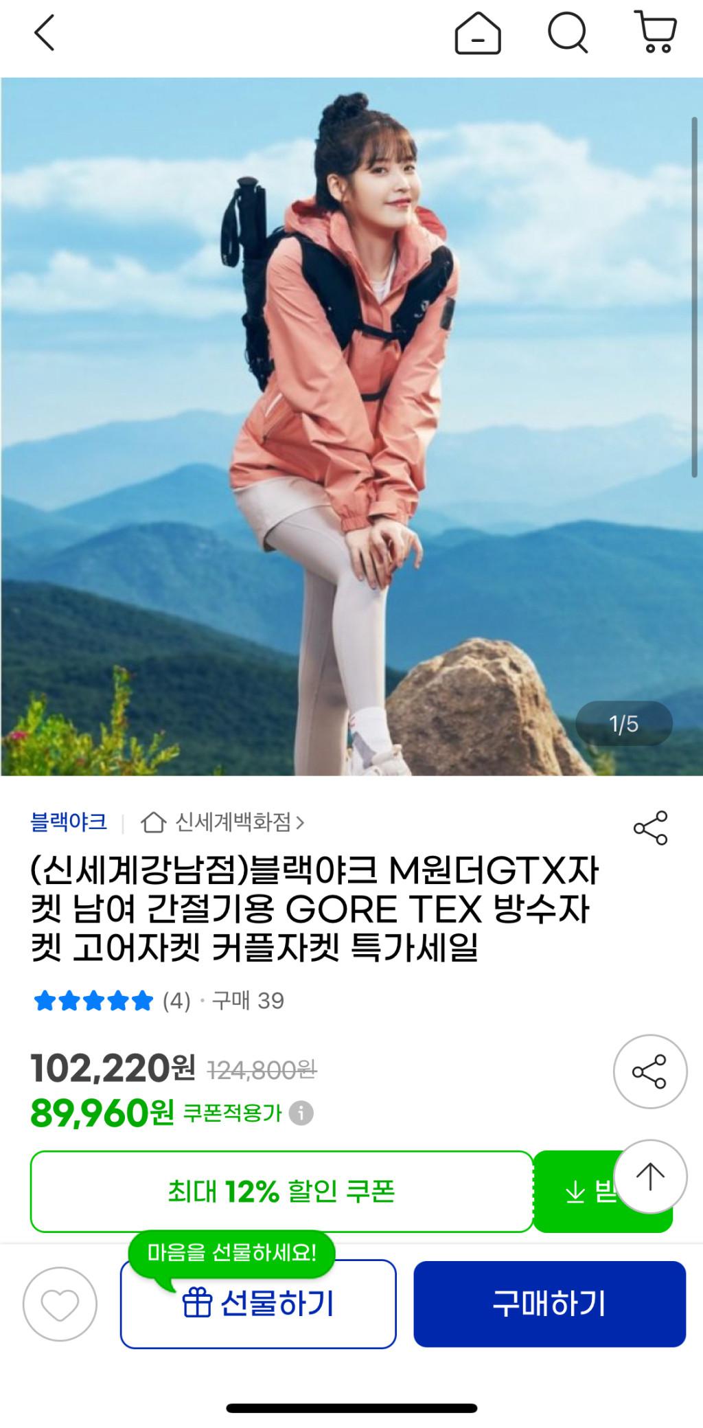 [G마켓] 블랙야크 M원더GTX자켓 고어텍스바람막이 (89960/무배)
