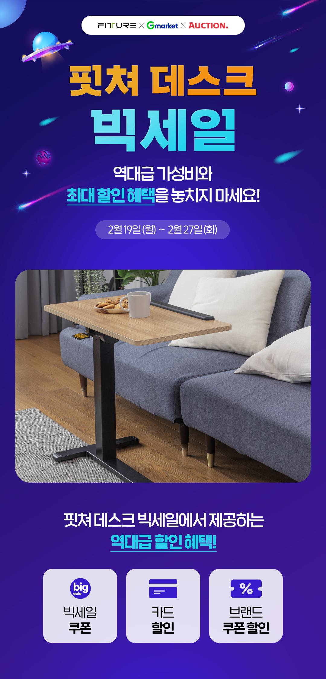 [G마켓] [핏쳐] 디지털 라이프 빅세일 이동식 사이드테이블, 모션데스크 특가 진행 (~2/27)