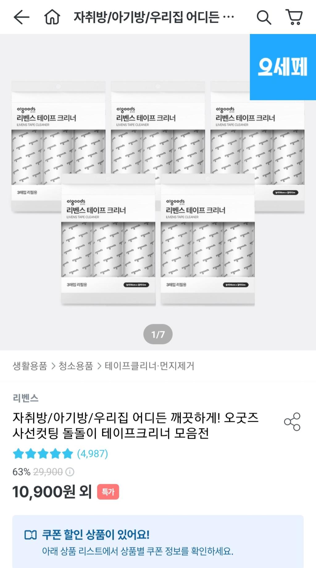 [오늘의집] 사선컷팅 돌돌이 테이프크리너 리필 15입