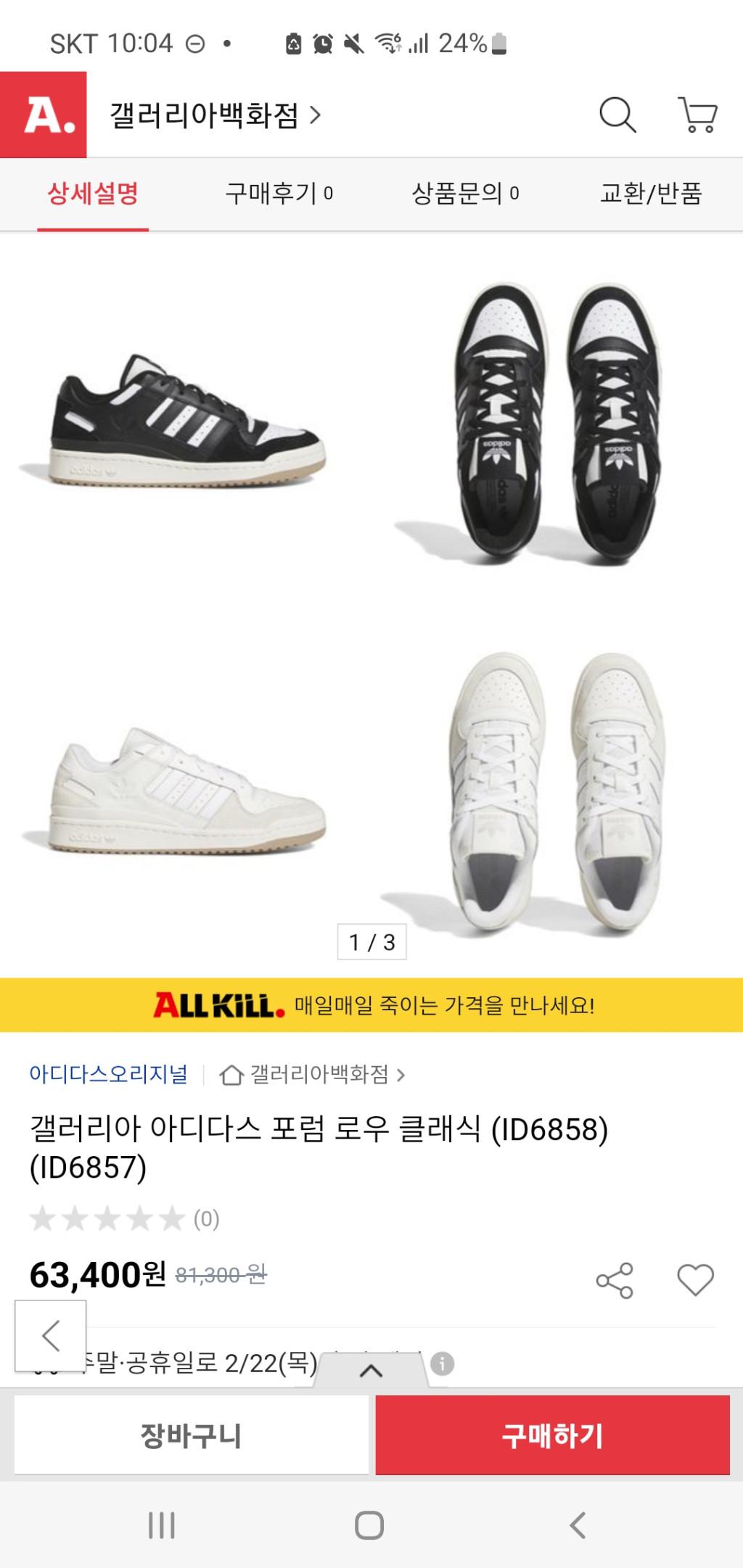 [옥션] 갤러리아 아디다스 포럼 로우 클래식 63400원