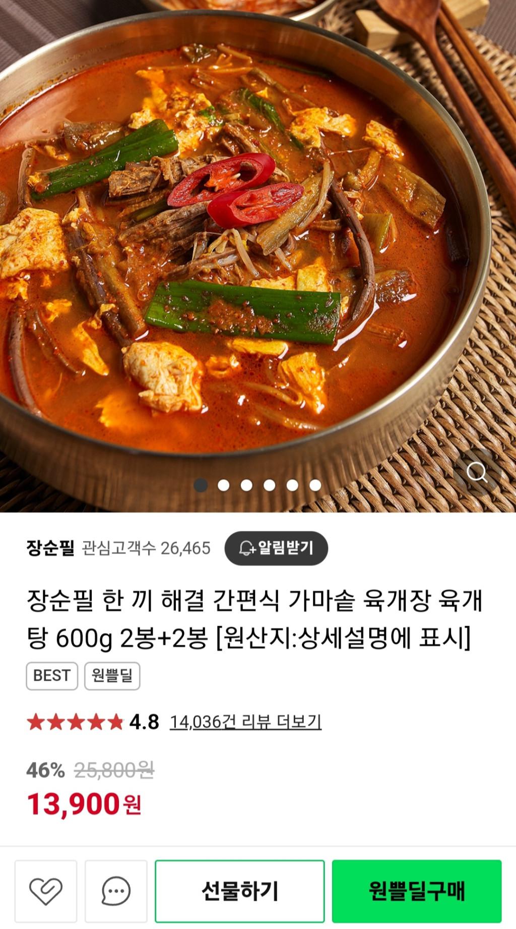 [네이버] 장순필 가마솥 육개장 2+2봉(무배)