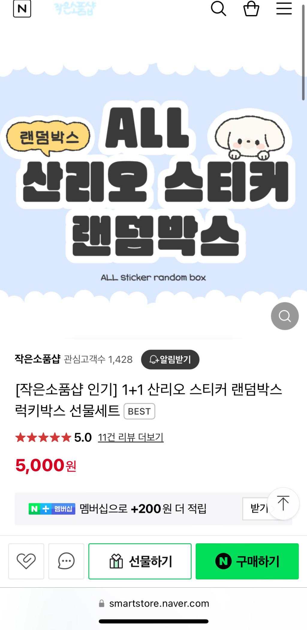 [네이버] 산리오 스티커 랜덤 박스 1+1