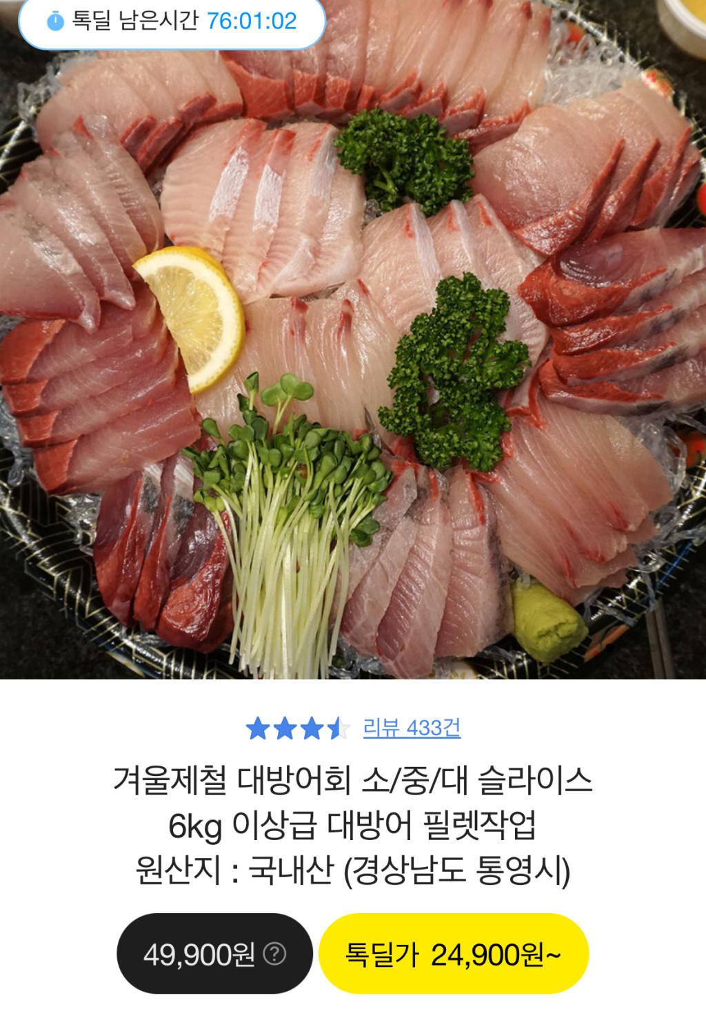 [카카오톡딜] 대방어회 슬라이스 300g 외 다양