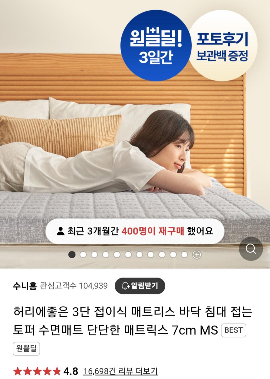 [네이버] 3단 접이식 매트리스 7cm MS (129,000원 / 무료배송)