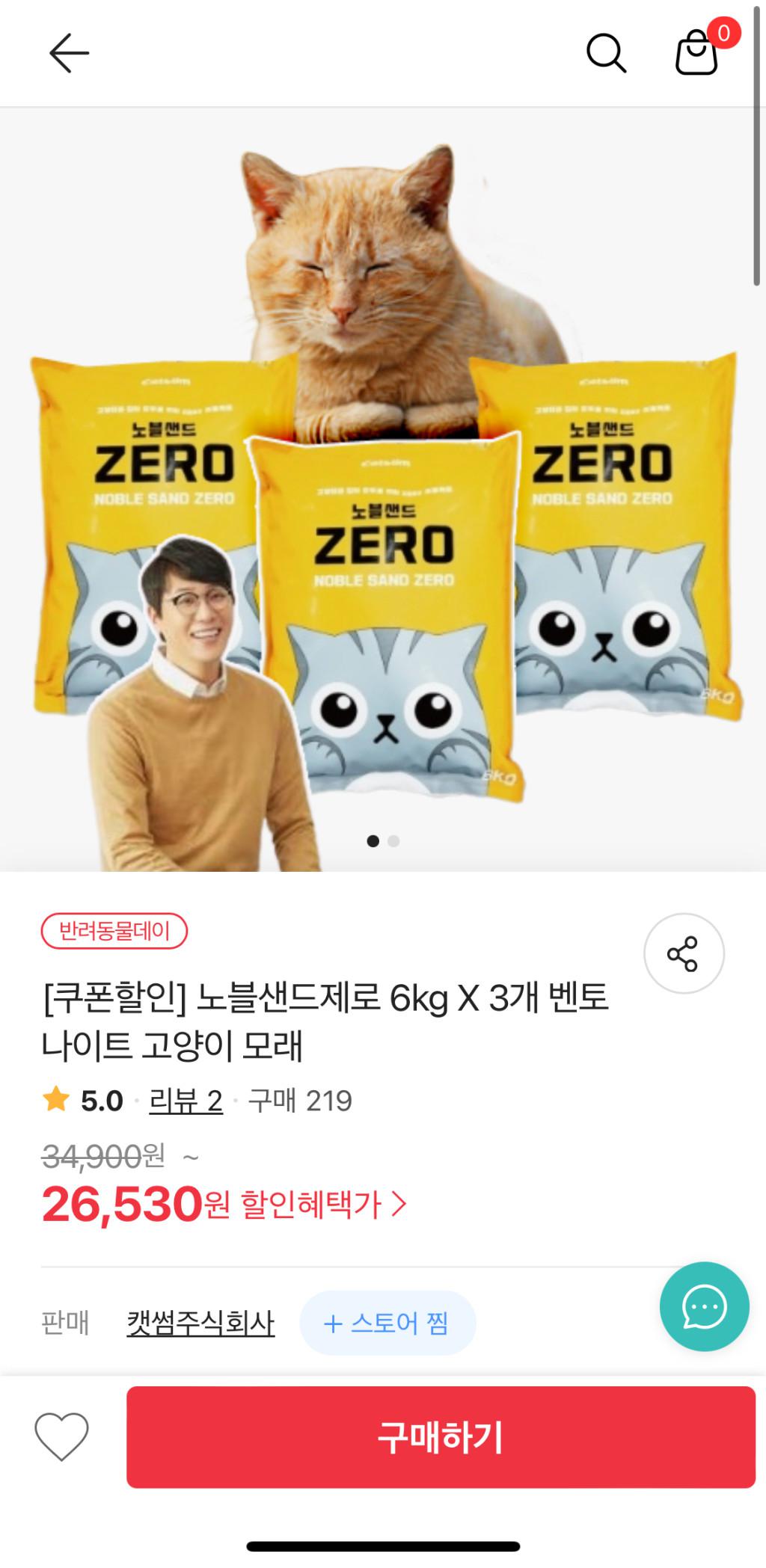 [위메프] 노블샌드제로 벤토나이트 고양이 모래 나응식추천 6kg x 3