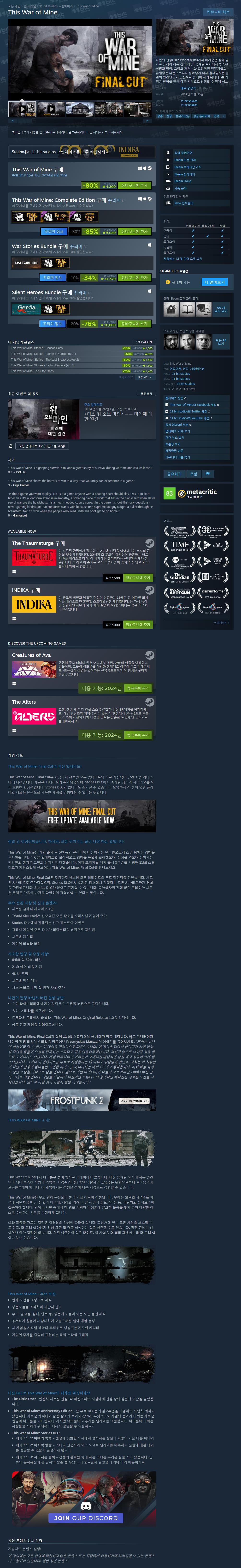 [기타] 스팀 This War of Mine 할인