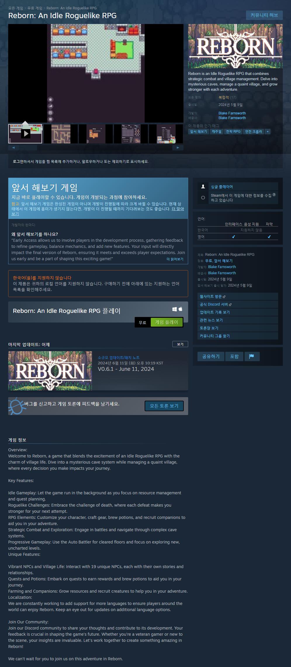 [기타] 스팀 Reborn: An Idle Roguelike RPG 무료