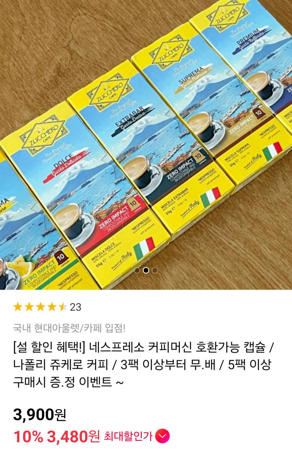 [11번가] 네스프레소 커피머신 호환가능 캡슐 나폴리 쥬케로 커피 10팩 카카오+티멤버십(무배)