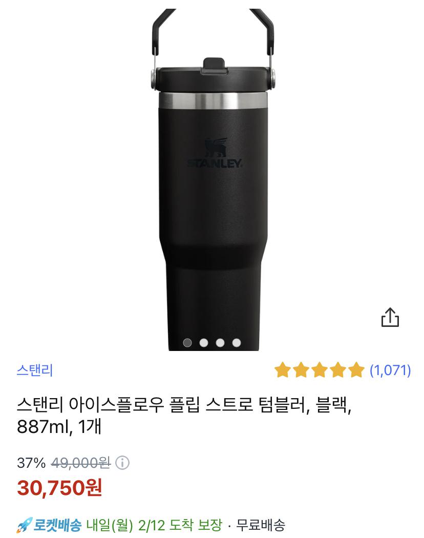 [쿠팡] 스탠리 아이스플로우 플립 스트로 텀블러, 블랙, 887ml