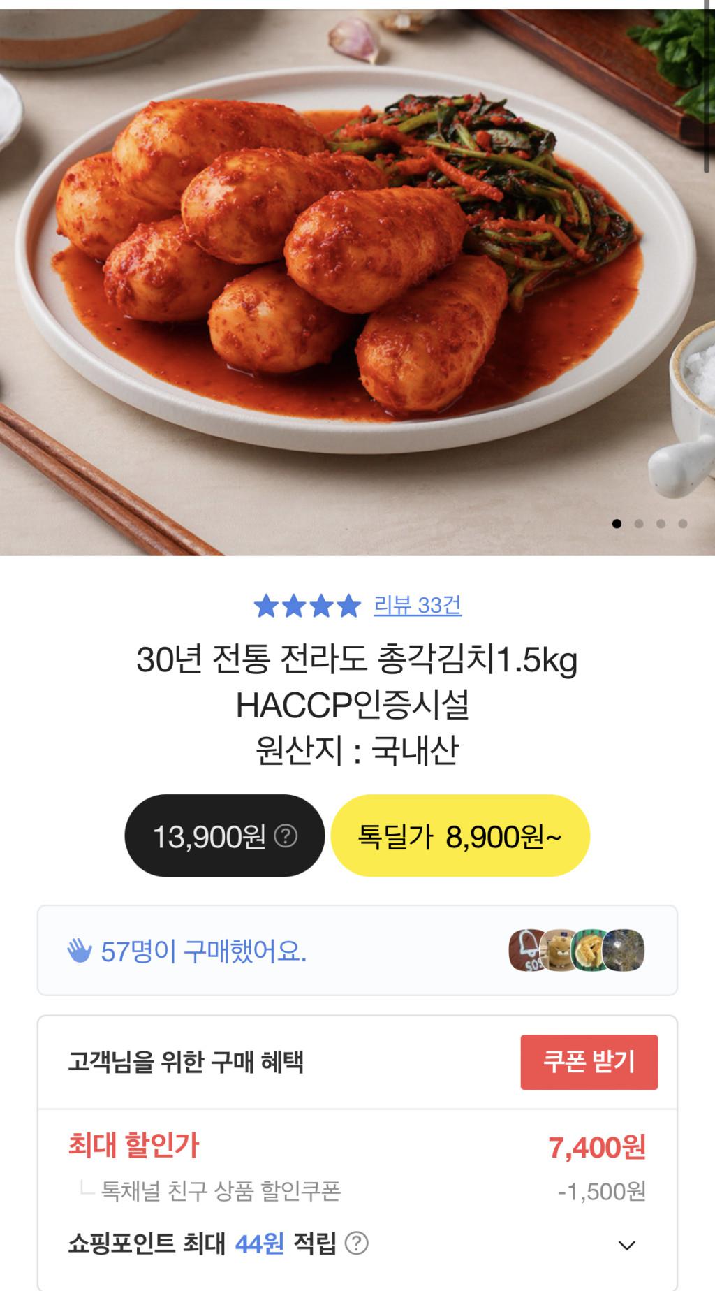 [카카오톡딜] 30년전통 전라도 총각김치 1.5kg