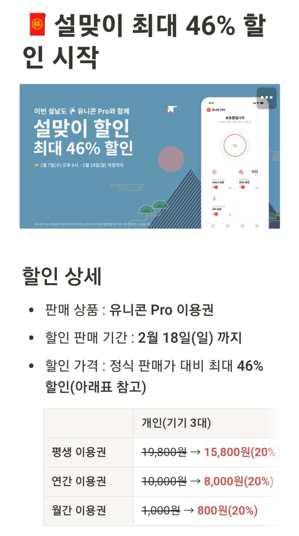 [기타] [유니콘] 유니콘 Pro 이용권 최대 46% 할인