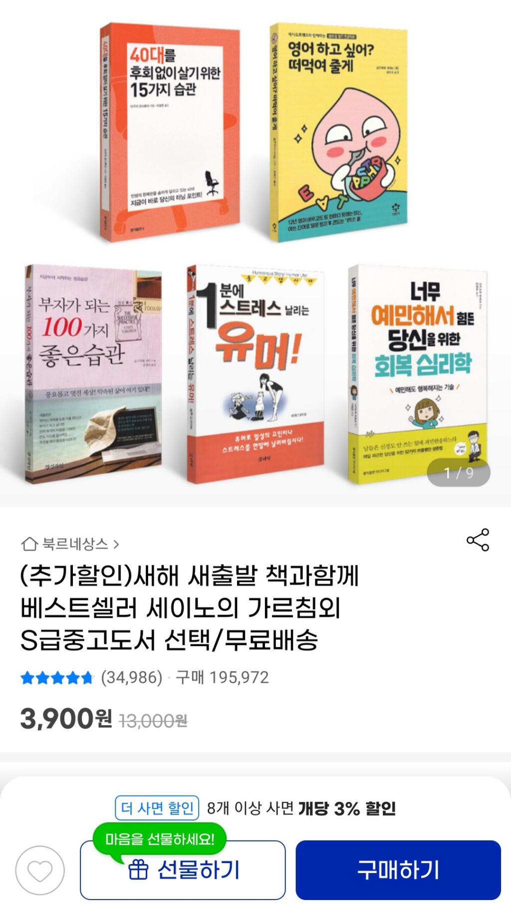 [G마켓] 베스트셀러 세이노의 가르침외 S급중고도서 선택(무배)