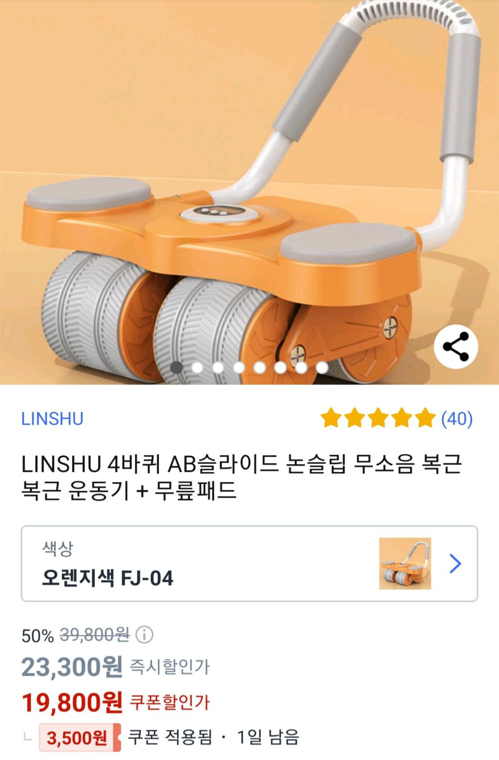 [쿠팡] LINSHU 4바퀴 AB슬라이드 논슬립 무소음 복근 운동기 + 무릎패드