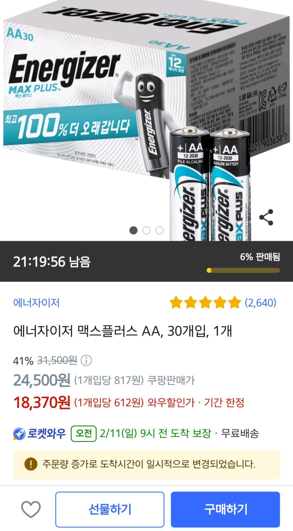 [쿠팡] 에너자이저 맥스플러스 AA, 30개입 (와우 할인)