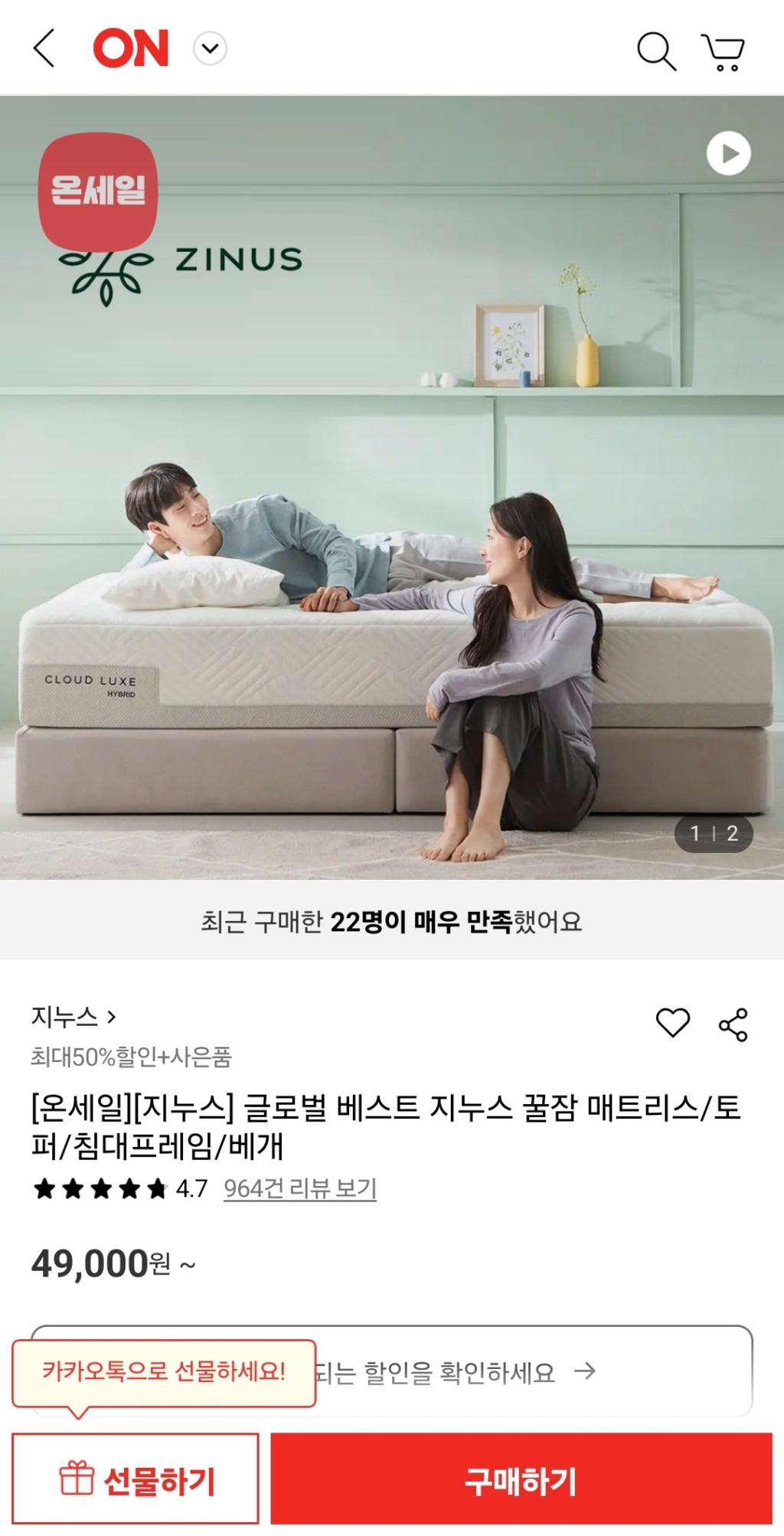 [롯데온] 롯데온)지누스 에어 메모리폼 토퍼 사이즈 (S)