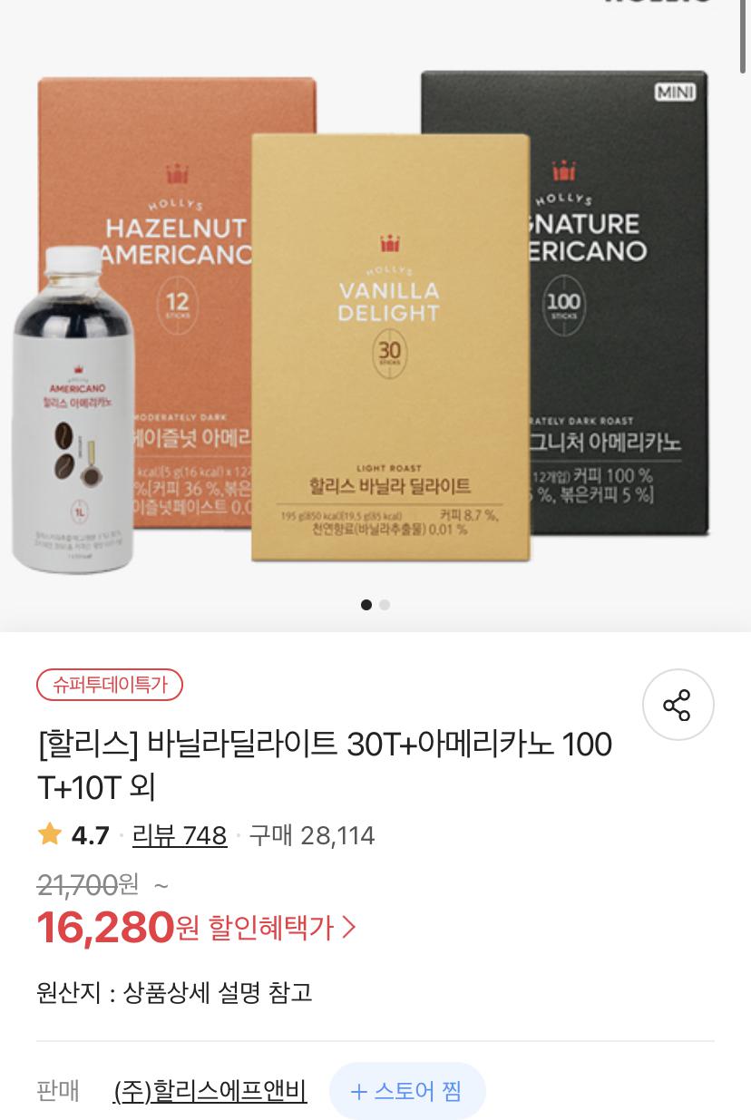 [위메프] 할리스 바닐라딜라이트 30T+아메리카노 100T+10T