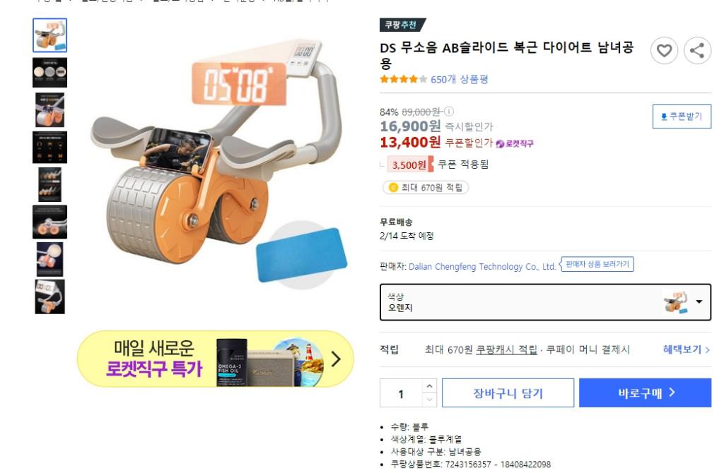 [쿠팡] DS 무소음 AB슬라이드 복근 다이어트 남녀공용 (13,400/무료배송)