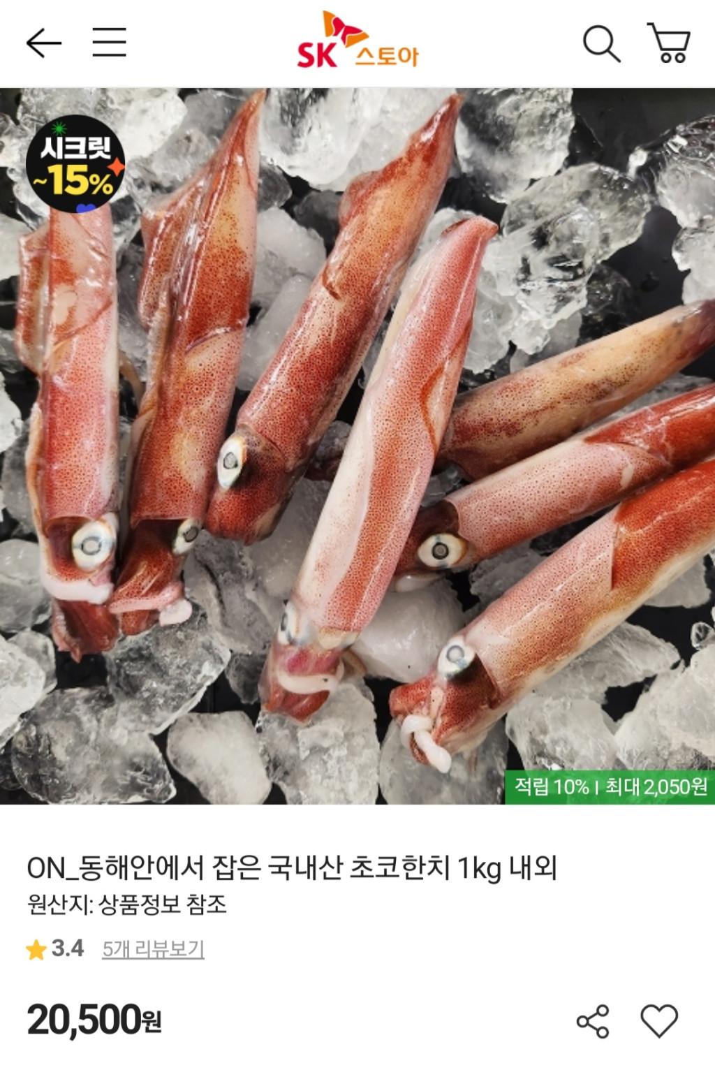 [기타] 자연산 한치 1kg (8~9미)