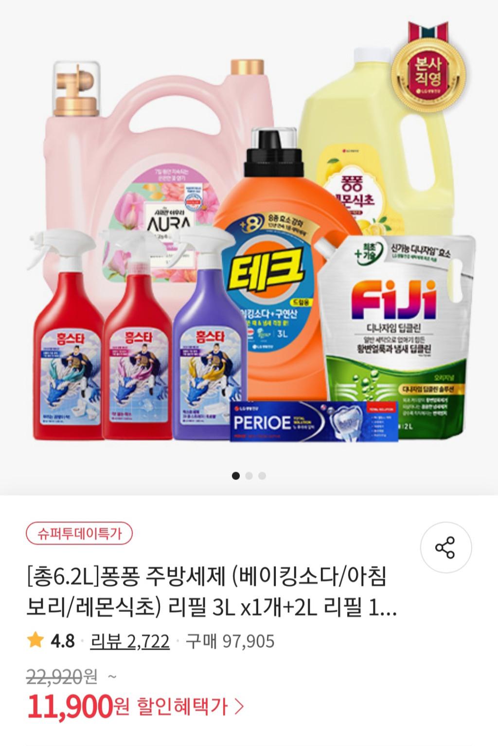 [위메프] 퐁퐁 주방세제 6.2L 외 모음전 (다양 / 무료배송)
