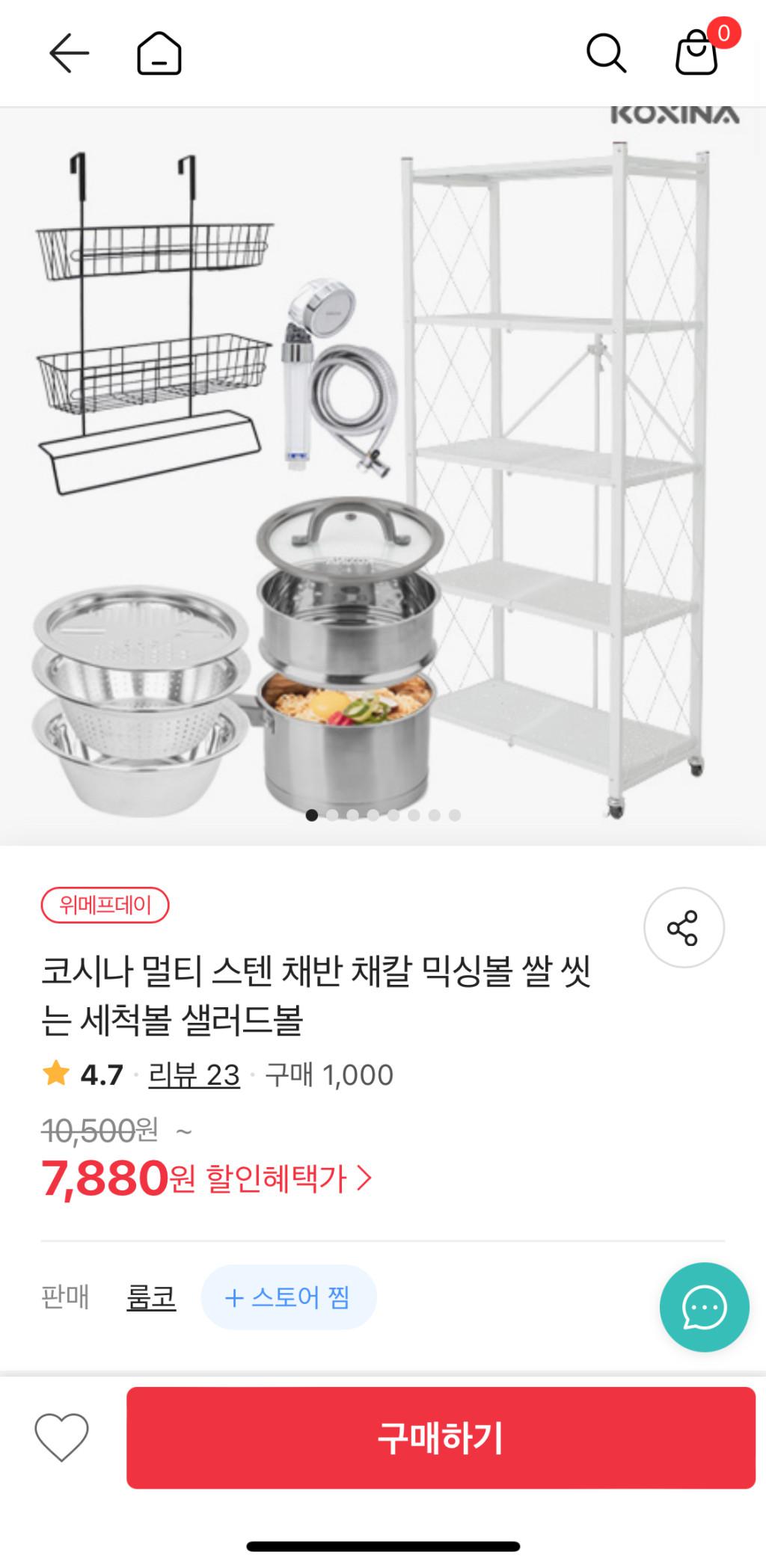 [위메프] [위메프] 명절준비 멀티 스텐 채반 믹싱볼 7880원 무배