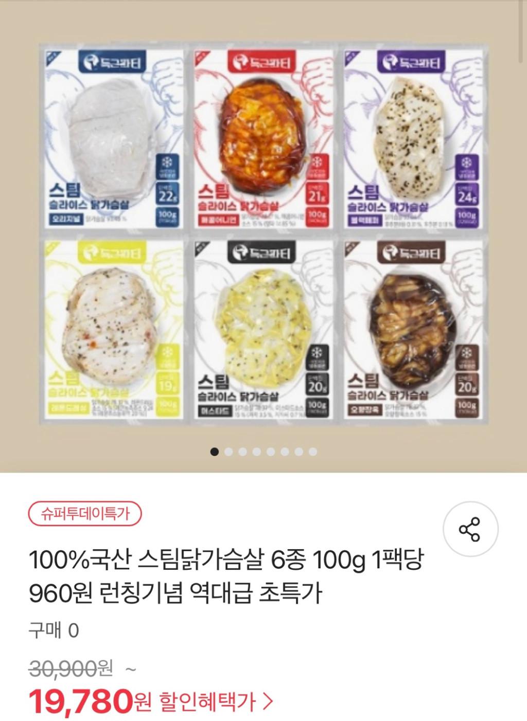 [위메프] 위메프) 100%국산 스팀닭가슴살 6종 100g 18팩 19,780원 ~ / 무배