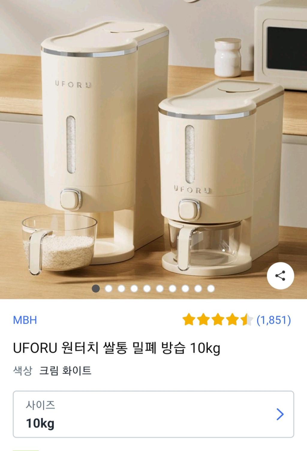 [쿠팡] UFORU 원터치 쌀통 밀폐 방습 10kg (16,800원 / 무료배송)