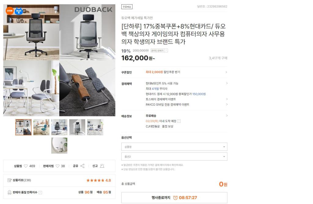 [티몬] 듀오백 의자 특가