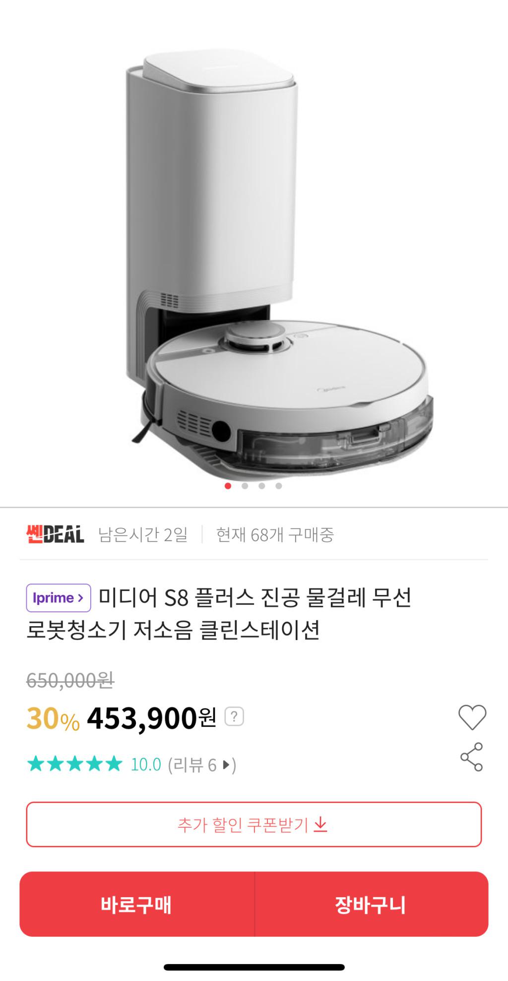 [인터파크] 미디어 클린스테이션 물걸레 로봇청소기 S8 플러스 (353,900원/무배)