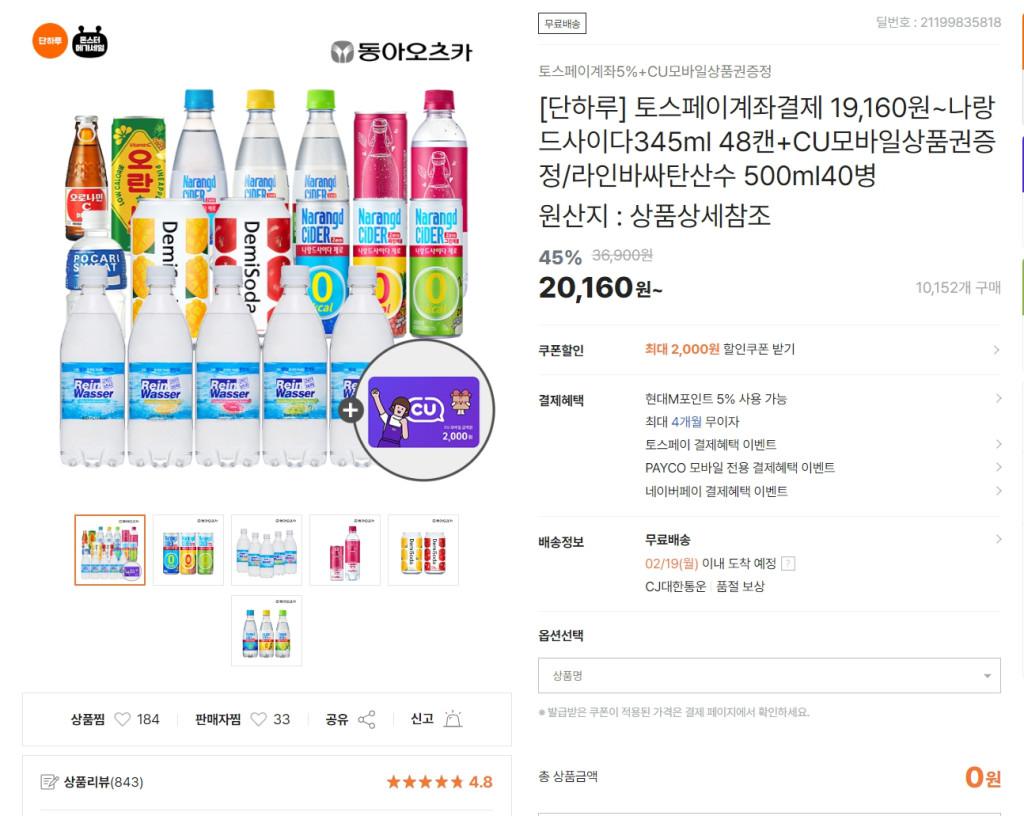 [티몬] 나랑드사이다 345ml 48캔+CU 상품권 2천원