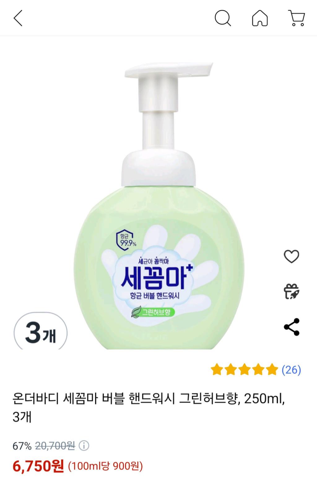 [쿠팡] 온더바디 세꼼마 버블 핸드워시 그린허브향, 250ml, 3개