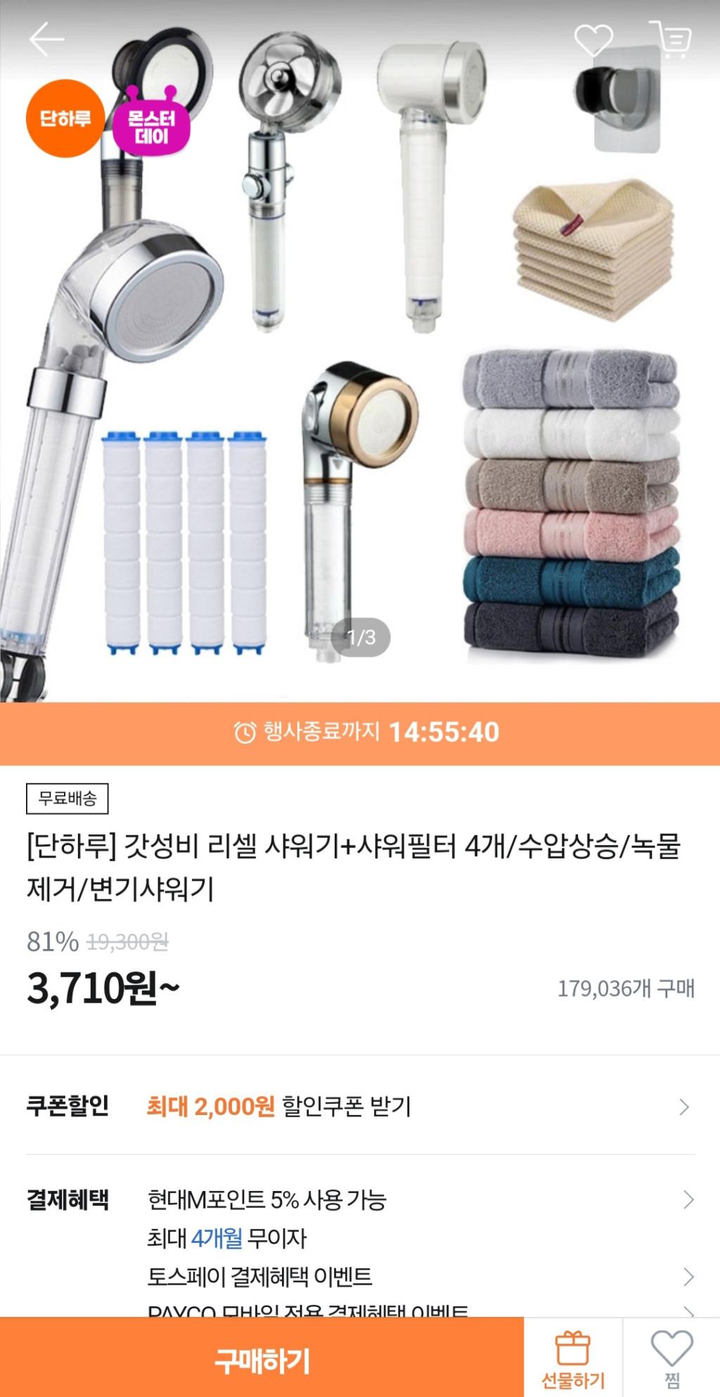 [티몬] 리셀 수압상승 샤워기 + 필터3개