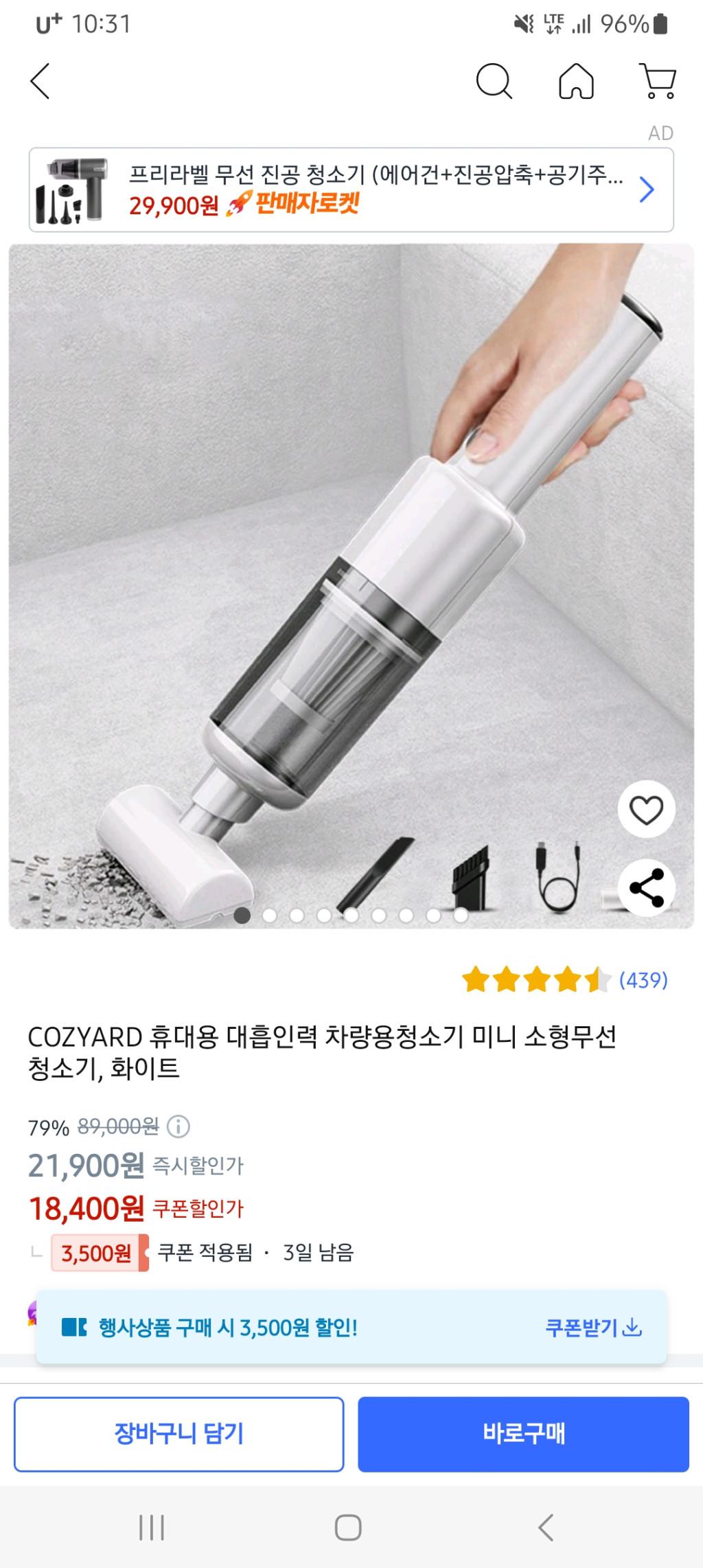 [쿠팡] 휴대용 차량용청소기 미니 소형무선 청소기