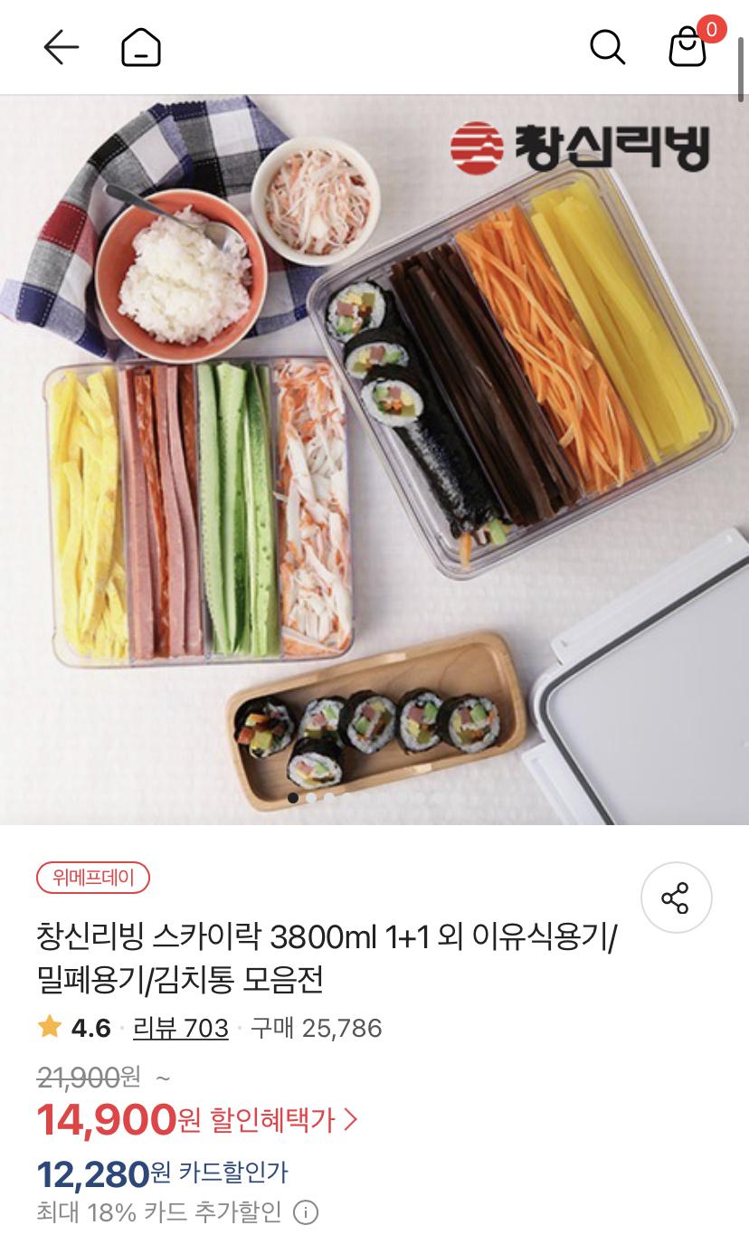 [위메프] 스카이락 점보 2호 (8칸) 이유식 용기 3800ml 1+1