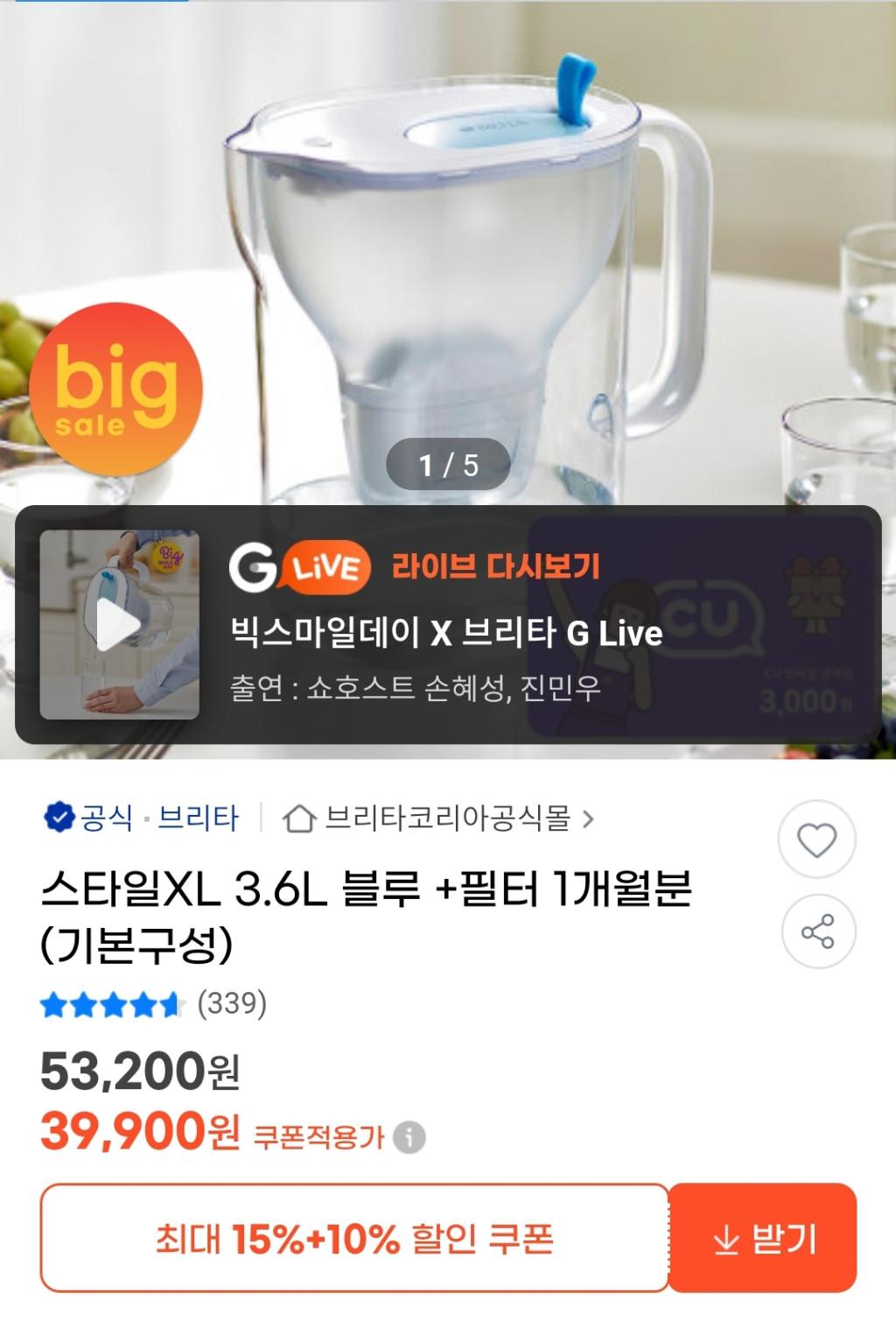 [G마켓] 브리타 스타일XL 3.6L 정수기+필터1개월분