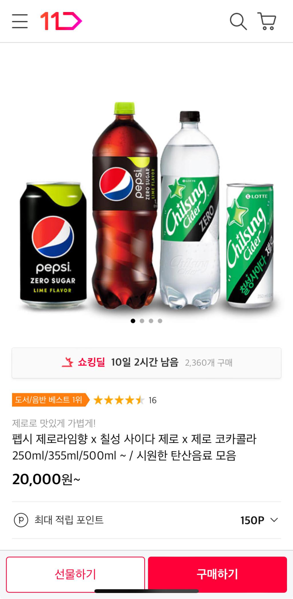 [11번가] 제로펩시 라임향 500ml 20개 (15,000원/무배)