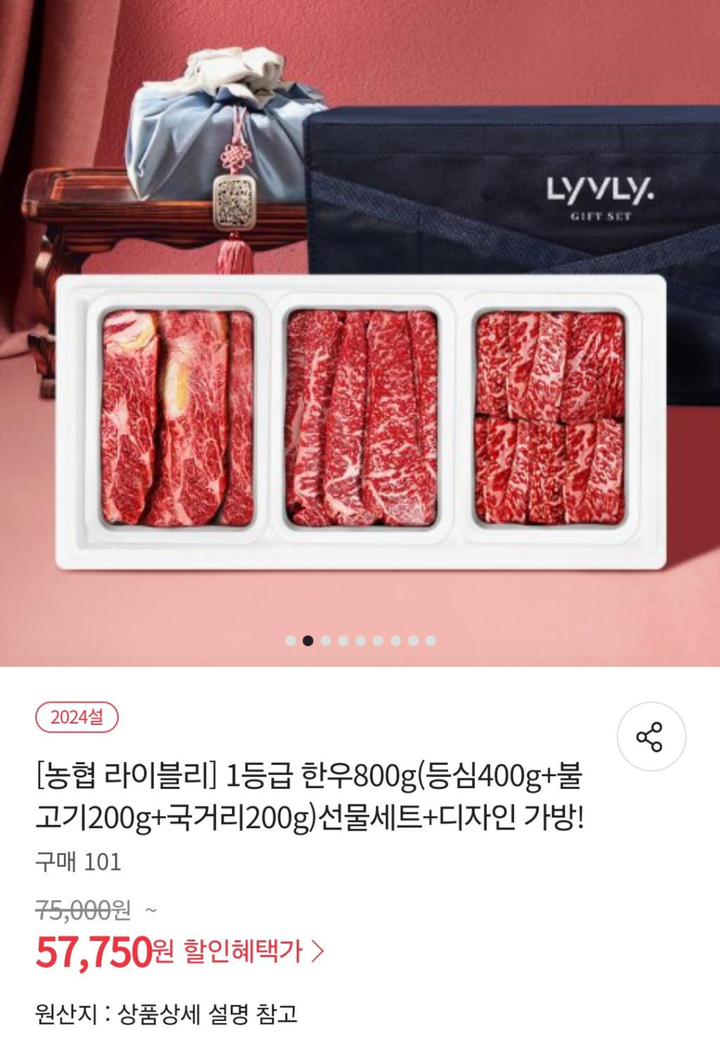 [위메프] 농협라이블리 1등급 한우선물세트 800g