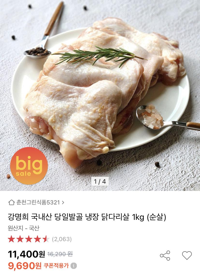 [옥션] 당일발골 냉장 닭다리살 순살 1Kg