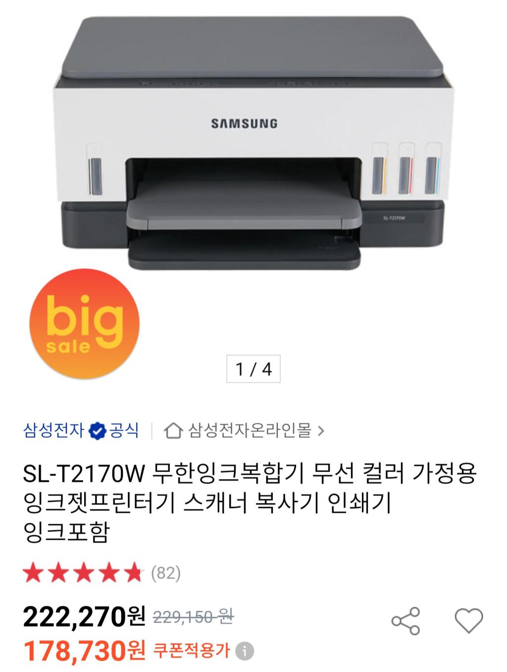[옥션] 삼성 SL-T2170W 무한잉크복합기 삼카/스카(무배)