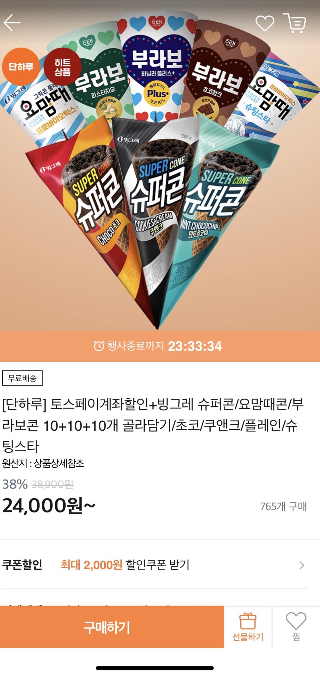 [티몬] 슈퍼콘/요맘때콘/부라보콘 10+10+10개 골라담기(토스페이22800원/무료)