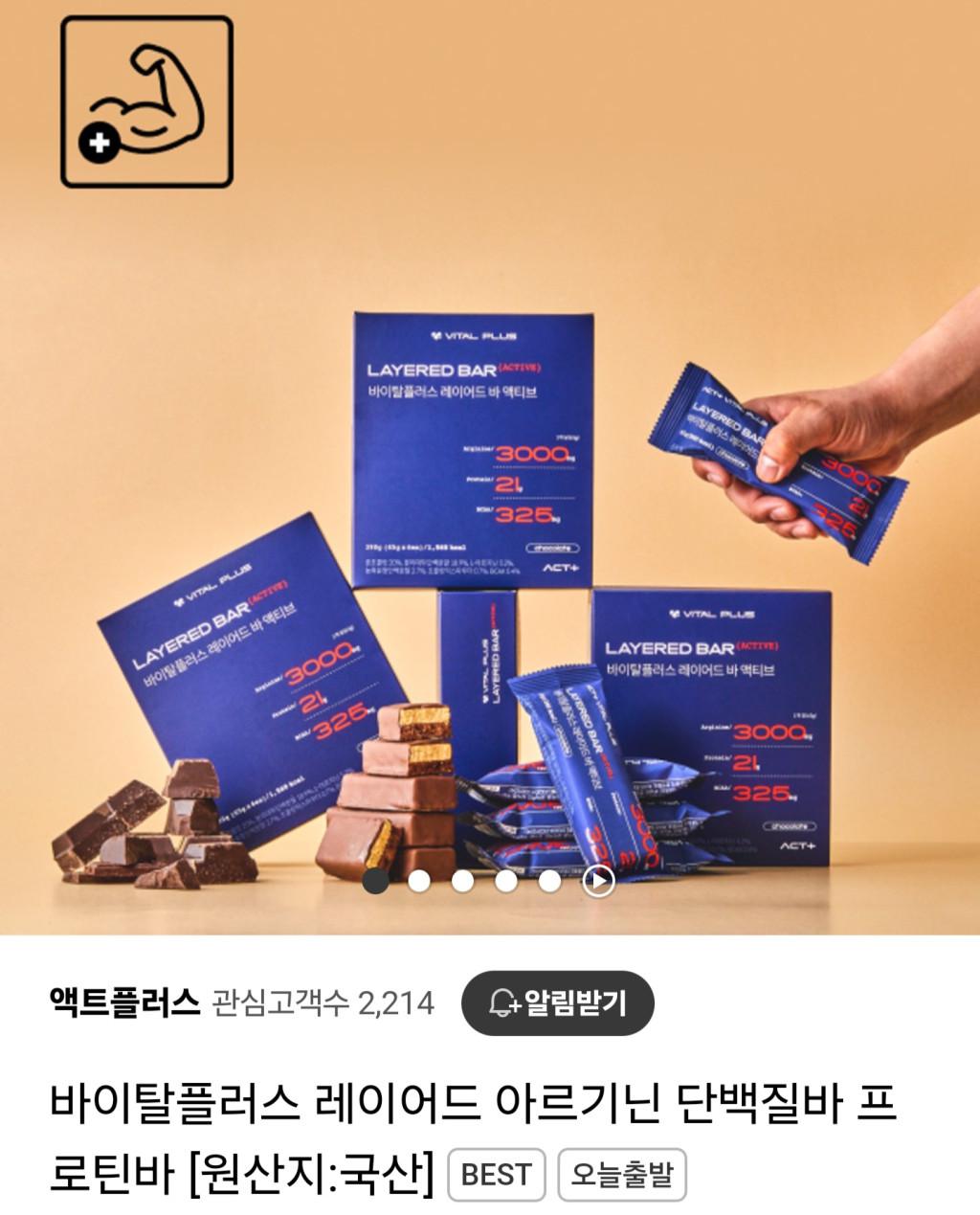 [네이버] 바이탈플러스 레이어드 아르기닌 단백질바 프로틴바 65gx6개입 (무배)
