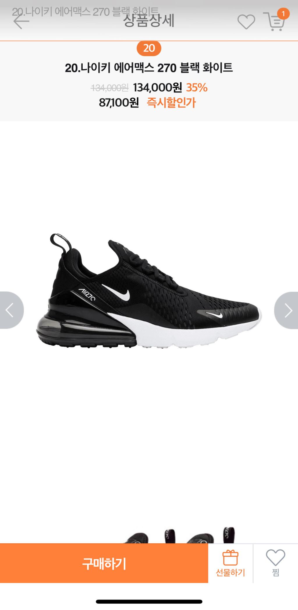 [티몬] 나이키 에어맥스 270 블랙화이트